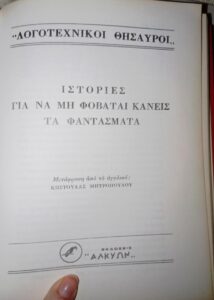 ‘Ιστορίες για να μην φοβάται κανείς τα φαντάσματα’, μετάφρασης διά χειρός κας Μητροπούλου Κωστούλας.