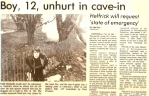 Στις 14 Φεβρουαρίου του 1981 ένα αγόρι 12 χρονών γλύτωσε από θαύμα όταν έπεσε σε τρύπα στο έδαφος, που είχε προκληθεί από την υπόγεια φωτιά.